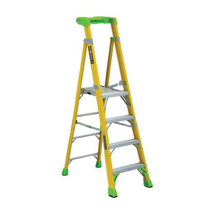 Louisville® Platform and Leaning Step Ladder, Cross Pinnacle Pro, Series: FCP1400HD, 4 ft Ladder Height, 14-1/2 in Platform Width, 17.6 in Platform Depth, 3 ft 10 in Platform Height, 375 lb Load, 25-7/16 in Bottom Width, 41-1/8 in Base Spread, 3 Steps, 3 in Step Depth, Non-Marring Bonded Tread, ANSI Code: A14.5 Type IAA, Fiberglass