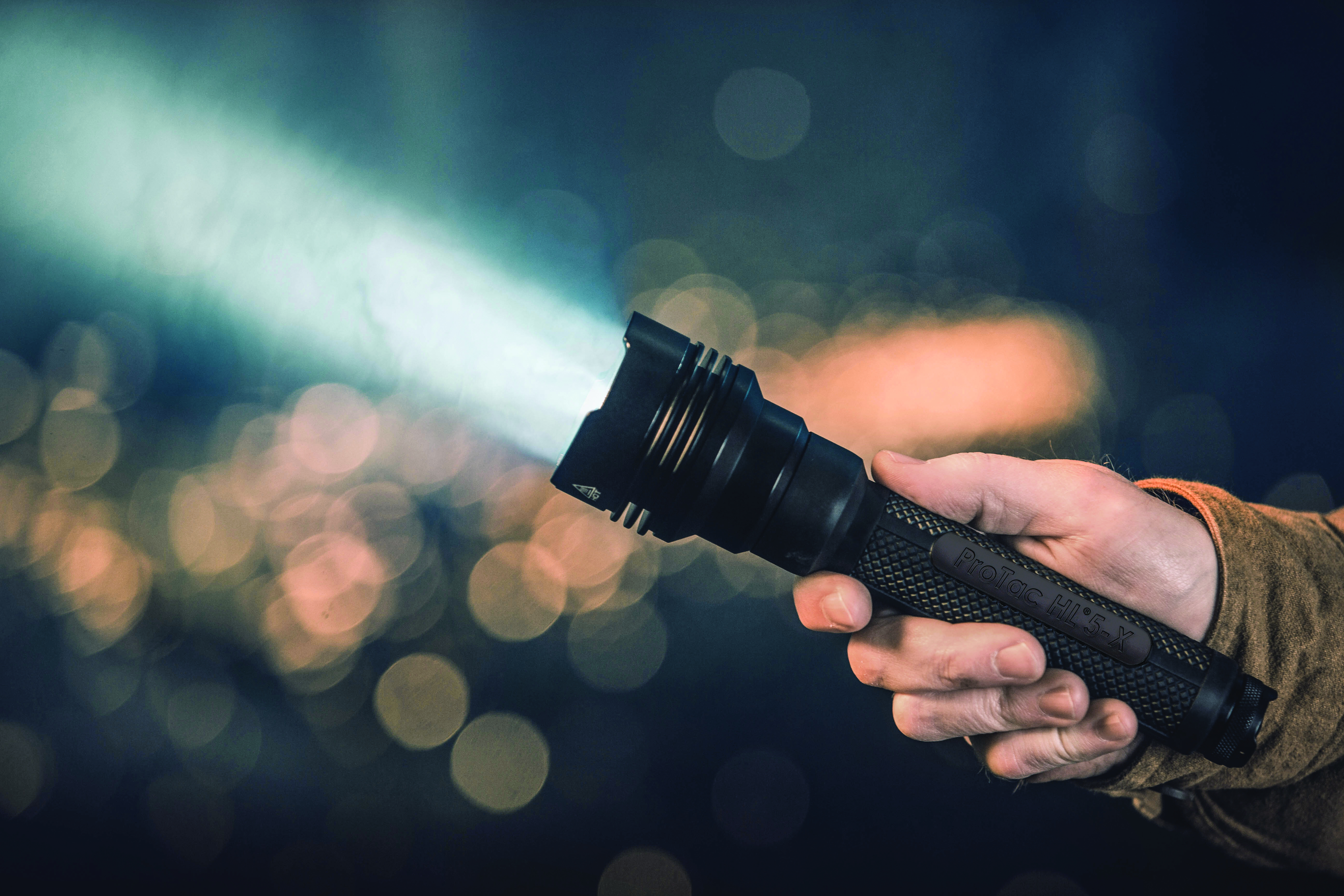 - Medium: 1000 Lumens, 237 m beam, runs 2.5 hr (CR123A), runs 3 hr (18650 USB), 14100 cd