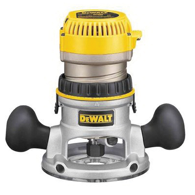 DeWALT® Electric Router, Corded EVS Fixed Base Mid Size, 1/4 in, 1/2 in Chuck, 8000 to 24000 rpm Speed, 2-1/4 hp, 120 V AC, 12 A, Die Cast Aluminum Housing Material, Overmold Rubber Grip Handle, Black/Silver/Yellow, Grounded Cord, Toggle Switch