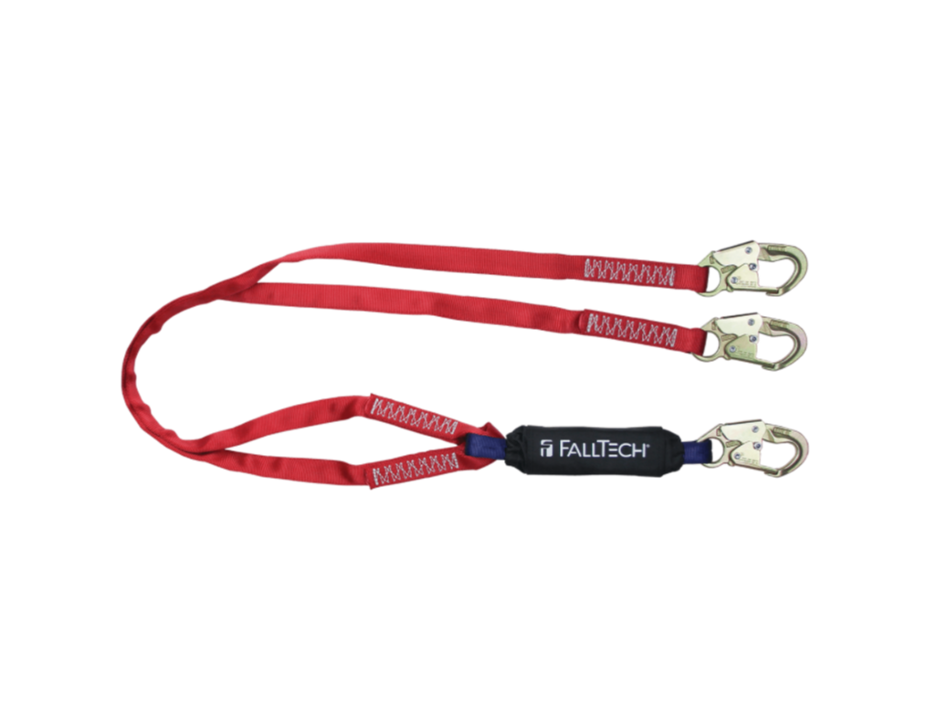 8247BY FallTech 6' Ironman® 12' free fall Energy Absorbing Lanyard, Double-leg with Steel Snap Hooks