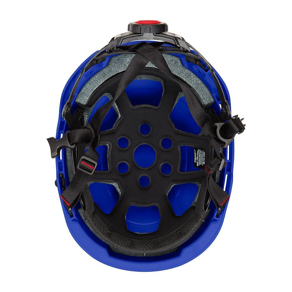Milwaukee® Safety Helmet, Adjustable, Blue, LEXAN™ Polycarbonate, Padded Suspension, ANSI Electrical Class Rating: Class E, ANSI Impact Rating: Type II, Slotted: No, Swing Wheel Ratchet Adjustment