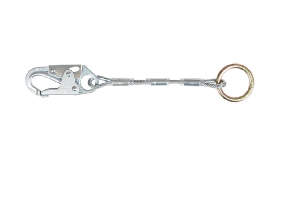 - Includes alloy steel snap hook for harness attachment with steel thimbles and swaged aluminum ferrules