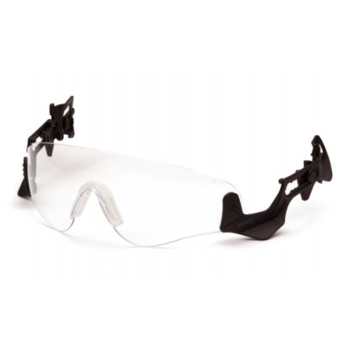 One-piece wraparound lens for eye protection. Clips to secure the lens accessory into the safety helmet. 5-position length adjustment provides the best fit for all head sizes. Optically correct polycarbonate lens with impact resistance against flying particles. Filters out 99.9% of all harmful UV light