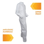 KleenGuard™ Disposable Coverall, Liquid Particle Protection, Series: A40, Unisex Gender, 4XL Size, White, Microporous Film Laminate, 31 in Chest, 41-1/2 in Inseam Length, 1.9 oz Fabric Weight, Serged Seam, Front Zipper Closure, Resists: Debris, Dry Particulates and Liquid Splashes