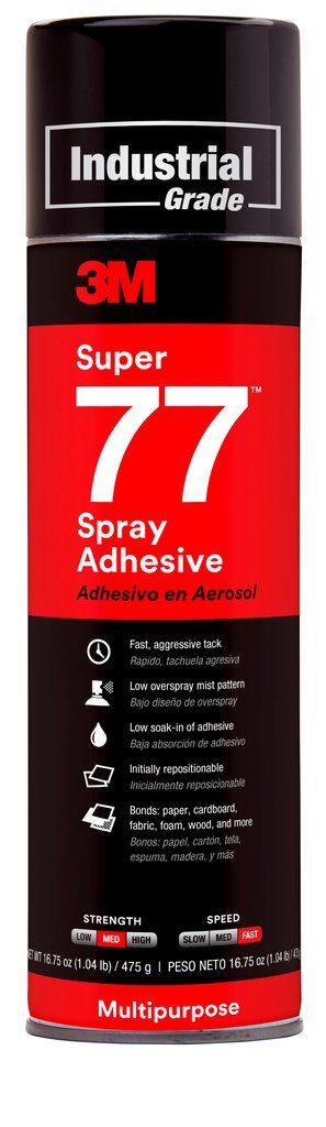 3M™, 7000000931, Adhesive, Spray, Aerosol Can Container, 24 fl-oz Container, 16.75 oz Net Weight, 15 s to 1 min Drying, 15 s to 30 min Setting, 30 min Curing, Clear, 150 deg F, 0.72 Specific Gravity, 0.51 VOC, Flammability: 4, Adheres to: EPDM Rubber, Fabric, Felt, Cork and Fibrous Glass, Latex, Urethane, Glass and Ceramic, Leather, Metal, Paper and Cardboard, ABS, PVC, Acrylic, Flexible Vinyl, High Performance Nylon, Polyolefin and Thermoplastic Elastomer, Wood and Hardboard