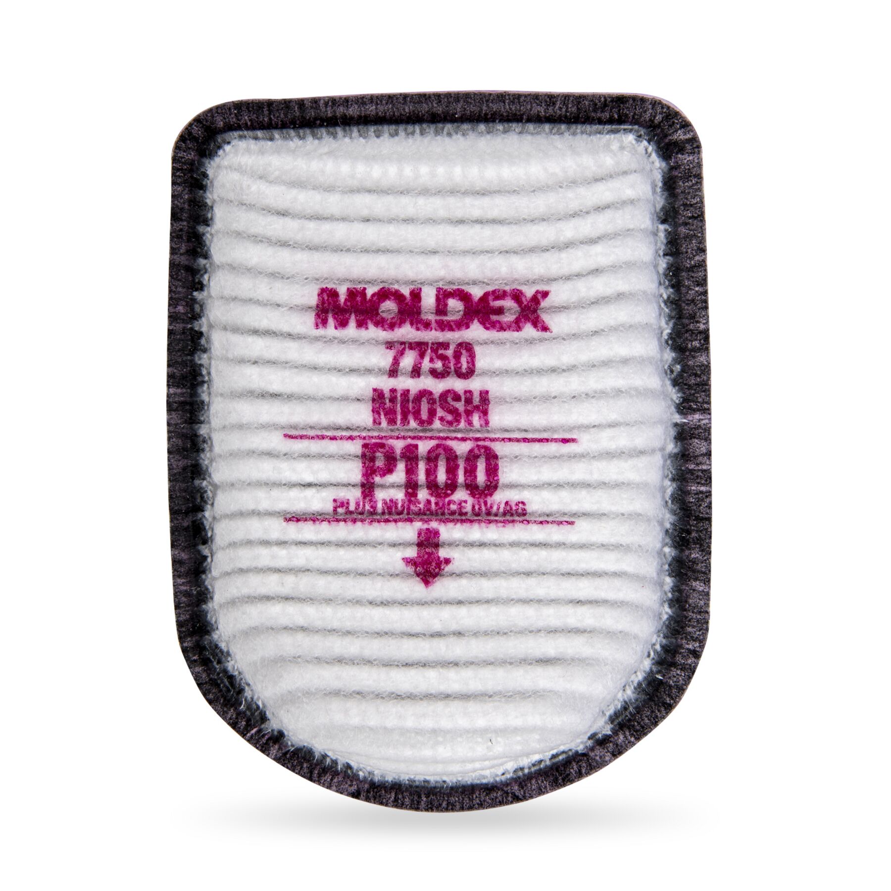 The Moldex 7750 P100 Filter provides P100 particulate protection with nuisance organic vapor and acid gas relief, featuring IonicAir Filtration Technology for enhanced breathability.