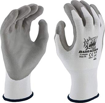 West Chester Barracuda Cut Resistant Gloves, Machine Washable, Series: 713HGWU, Polyurethane Coating, HPPE Fiber, Gray/White, Seamless Knit Style, Knit Wrist/Rib Knit Cuff, 10-1/4 in Length, A2 ANSI Cut-Resistance Level, Resists: Abrasion and Cut