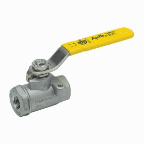 Apollo™, 7610701, Standard Configuration Ball Valve, 2-Piece, Series: 76-100, 1-1/2 in Nominal, FNPT End Style, 1500 psi CWP Pressure, 250 lb Pressure Class, Standard Port, Media: Water, Lever Handle Actuator, 316 Stainless Steel Ball, 4.34 in Inlet to Outlet Length, 3-1/4 in Top to Inlet Center, RPTFE/Stainless Steel Trim, MPTFE/RPTFE Softgoods, Domestic