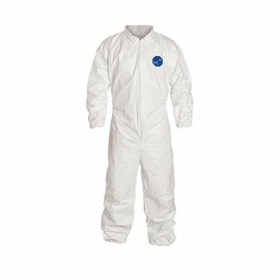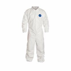 DuPont™ Disposable Coverall, Laydown Collar, Series: TY125S, L Size, White, 5.9 mil Tyvek® 400, 39-3/4 to 43-1/4 in Chest, 29 in Inseam Length, 1.2 oz/sq-yd Fabric Weight, Serged Seam, Front Zipper Closure, Resists: Tear