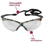 KleenGuard™, 22608, Safety Glasses With Neck Cord, Lightweight, Series: V30 Nemesis®, Universal Size, Anti-Fog Lens Coating, Clear Lens, Wrap Around Frame, Camouflage Frame, Nylon Frame, Polycarbonate Lens, Yes % UV Protection, Ratcheting Temple, Specifications Met: ANSI Z87.1-2010, CSA Certified