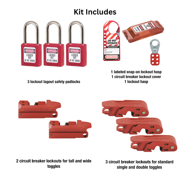 - • Kit includes three master lock no. 410KARED keyed alike Zenex™ thermoplastic padlocks and electrical focused high-use products such as cable lock out circuit breaker lockout and grip Tight™ ball valve lockout devices