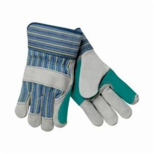 MCR Safety General Purpose Gloves, Double Palm, Series: 1411, Leather Palm Glove Type, Cowhide Leather Palm, Cowhide Leather, Gray, Gunn Pattern/Standard Finger/Wing Thumb Style, Fleece Lining, Plasticized Safety Cuff, Uncoated Coating, Knuckle Strap/Shirred Elastic Closure, 10.14 in Length