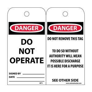 - Back Legend: DANGER - DO NOT REMOVE THIS TAG - TO DO SO WITHOUT AUTHORITY WILL MEAN IMMEDIATE DISCHARGE - IT IS HERE FOR A PURPOSE