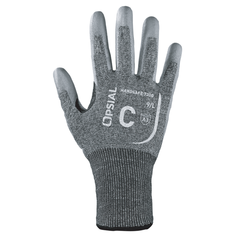 The Handsafe 730 G gloves provide dependable A3-rated cut resistance with lightweight comfort. Constructed from HPPE and glass fibers with a flexible 13-gauge seamless knit, these gloves feature a grey polyurethane palm coating for precision handling and a black nitrile reinforcement between the thumb and forefinger for added longevity. They deliver excellent abrasion and tear resistance for industrial applications such as automotive, metalworking, and assembly tasks.