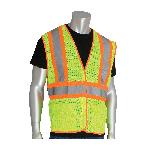 PIP® Safety Vest, 2-Tone, Series: 302-MVAT, M Size, Hi-Viz Lime Yellow, Polyester, 47.2 in Chest, 28 in Length, Hook and Loop Closure, 3 Pockets, ANSI Class: Class 2, Specifications Met: ANSI Specified