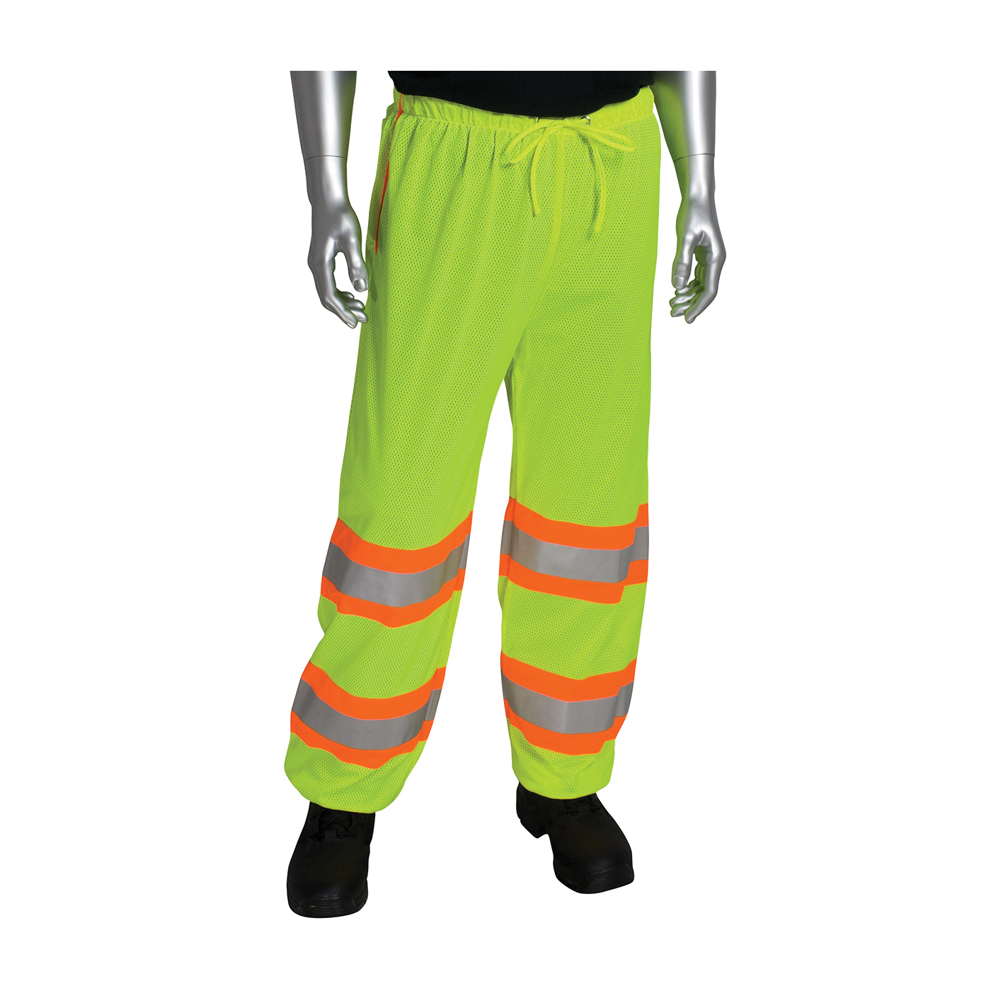 PIP® Traffic Pant, 2-Tone Ripstop Reinforced, Series: 319-MTP, L to XL Size, Hi-Viz Lime Yellow, Polyester Mesh, 53-1/2 in Waist, 110 GSM Fabric Weight, Elastic Drawstring Closure, 3 Pockets