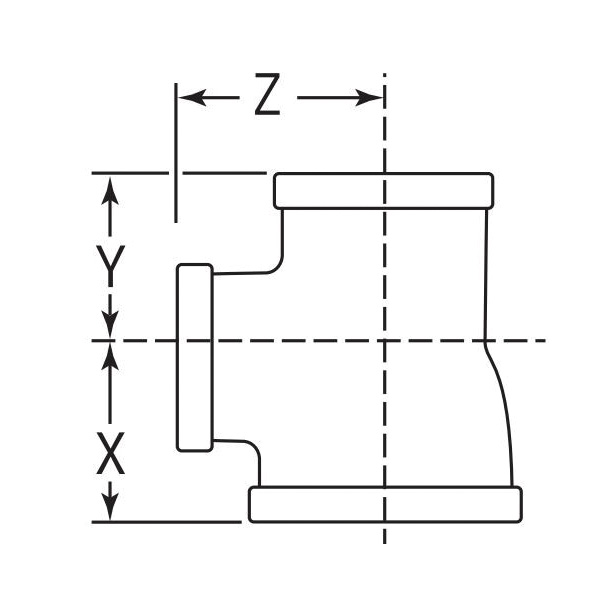 Smith-Cooper® Pipe Reducing Tee, Series: 33RT1, Tee Fitting/Connector, 1-1/2 x 1-1/2 x 1/2 in Nominal, FNPT End Style, 150 lb Pressure Class, 300 psi Pressure, Malleable Iron, Black